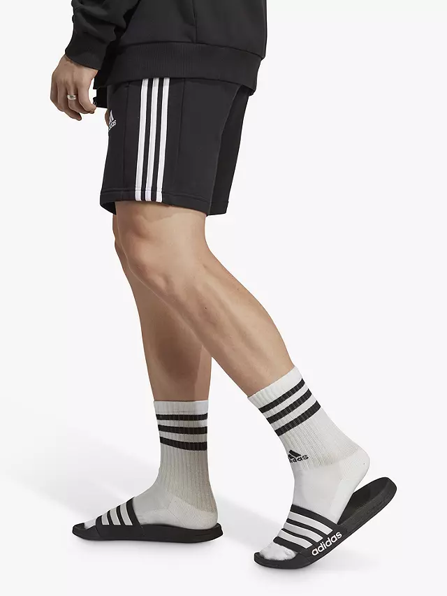 Rest-day comfort. These adidas shorts feature an authentic look with 3-Stripes from hip to hem, with the French terry fabric giving these shorts a soft and cosy feel. A drawcord-adjustable elastic waist offers a secure fit while side pockets add casual sportiness.