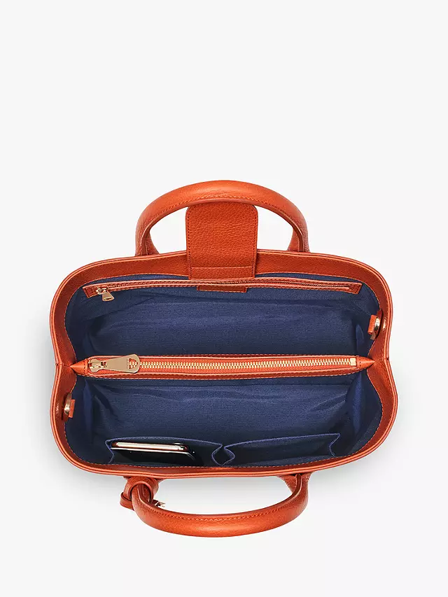 Contrasting lining gives this piece a vibrant touch, while the sturdy, structured design allows for easy storage of all your essentials. Inside the well-organised interior is divided into two and features two zipped pockets, two slip pockets. A magnetic dot flap closure secures the contents.