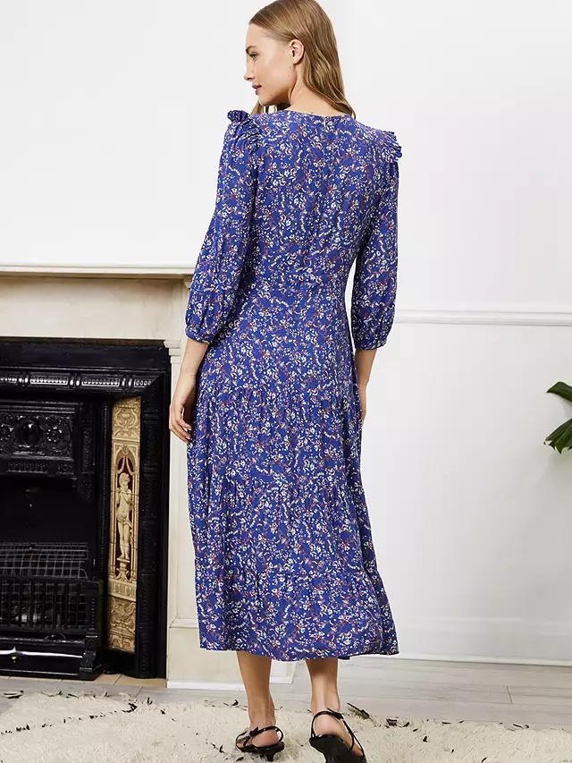 Baukjen’s midi-length Cece dress has a pintuck neckline, elbow-length sleeves and frill-edged shoulders. Fitted around the waist with a flattering panel, the skirt flares out with the fabric giving plenty of swish-factor. The floral print is gorgeous, too. The dress fastens with a centre-back zip.