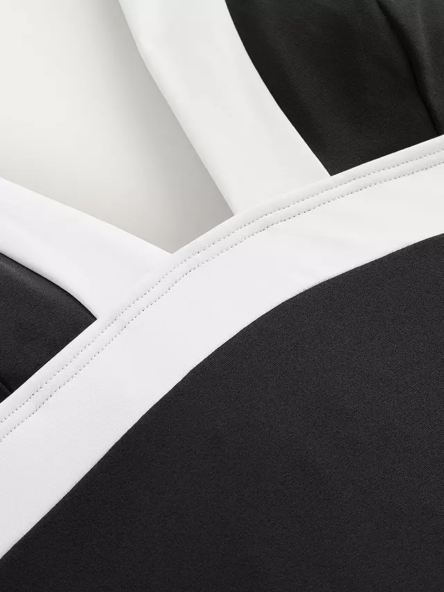 With a bold colour block palette, this panelled swimsuit by Boden is made with a flattering halterneck​, padding and an open back to help you soak up as much sun as possible.