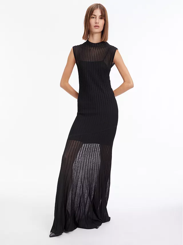 In a fit and flare silhouette that is structured with pleats, this floor-length dress from Calvin Klein is made to withstand plenty of wear (and washing for that matter). Topped with a round neck and cap sleeves, it is kept trend-free so that it’ll sit in your closet for years to come.