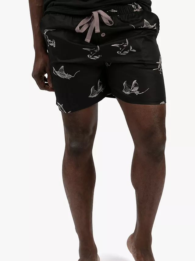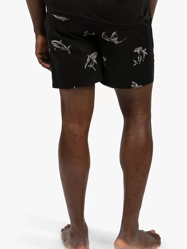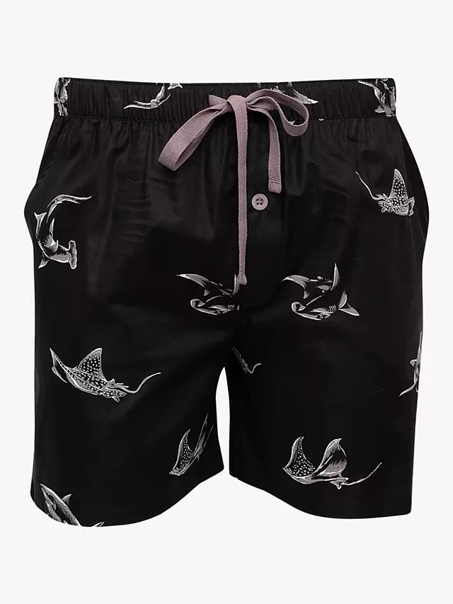 These pyjama shorts, featuring a Mason shark print are sure to make you stand out, lounge and sleep in style as the weather turns warmer. Fully elasticated at the waist with an adjustable front drawstring, the shorts have a true fly-front and two side pockets.