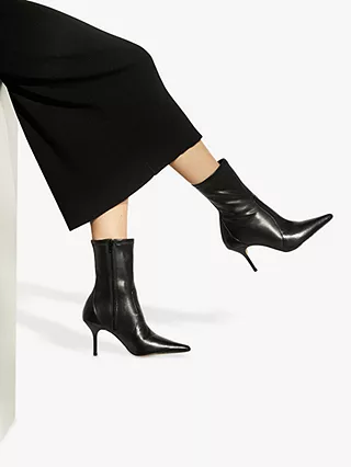 They have been crafted in-house with a pointy-toe profile and rest on a slick high-stiletto heel, whilst the side-zip fastening will enable you to slip yours on effortlessly.