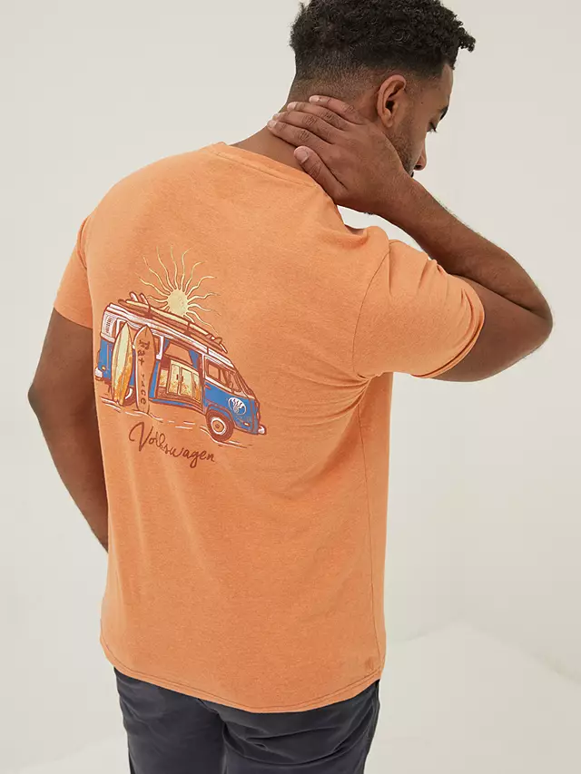 With a Volkswagen graphic to the chest and reverse, it comes in a summer staple dusky orange hue.