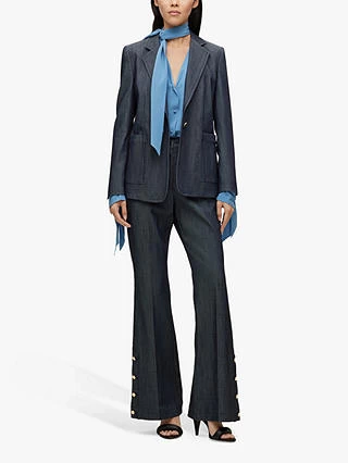 An elegant layering piece for smart events, this blazer by BOSS sits at the hips for practical coverage.