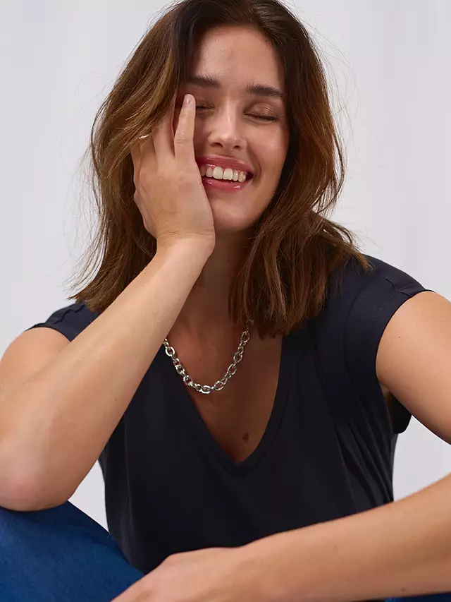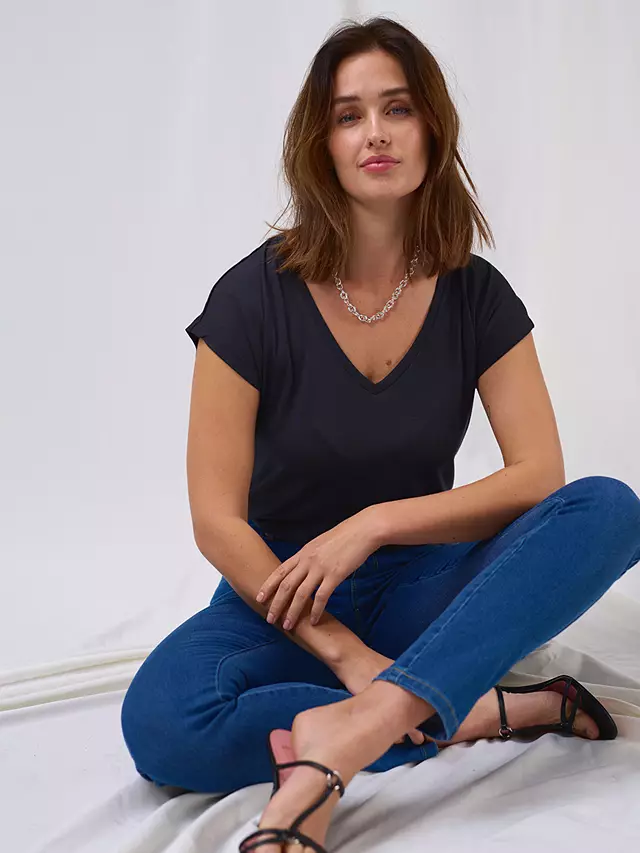 With a flattering v-neckline and short sleeves, it is made from soft fabric that withstands creasing and is an everyday wardrobe essential.