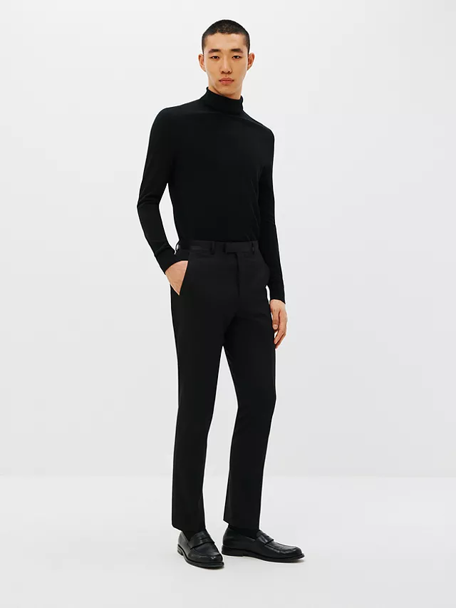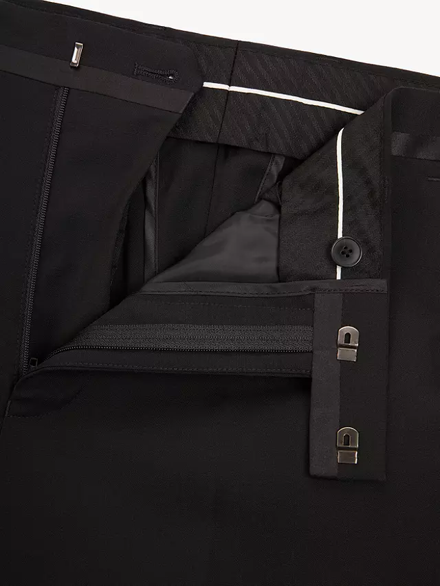 Woven in a tonic wool blend, this Kin suit trouser is tailored to a slim fit specification which features a mid-rise and a tapered leg. Inside, the trouser is lined with black pocketing and contrast white piping.