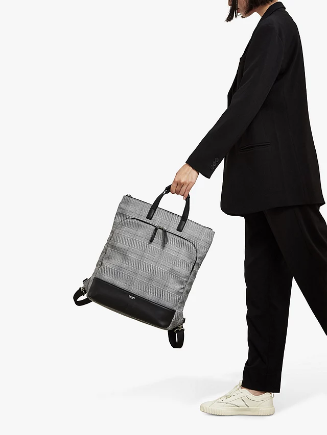 Designed to fit laptops up to 15″ in the padded compartment, it’s crafted from natural canvas material and features stowable shoulder straps for adaptability. Detailed with a trolley sleeve for easy travelling, all your essentials will be safely secure in it’s organised interior, it even has an RFID protected pocket.