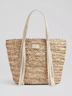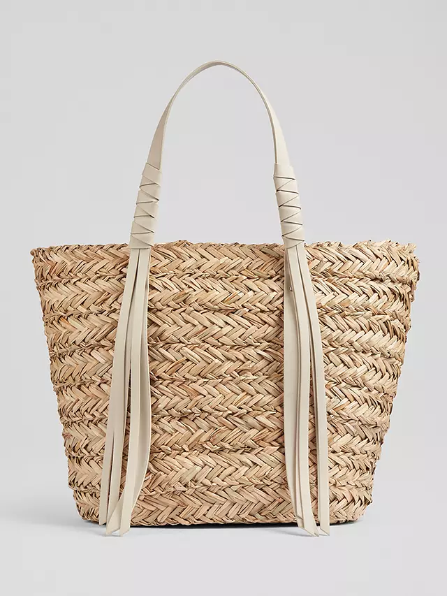 Perfect for sunny days thanks to its straw construction, it features an open top for easy access and opens to reveal an internal slip pocket that keeps items within reach.