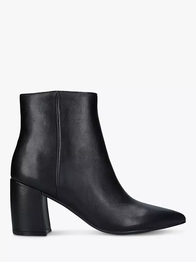 Set on a block heel, they feature a pointed toe for a sharp finish.