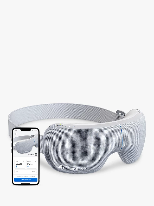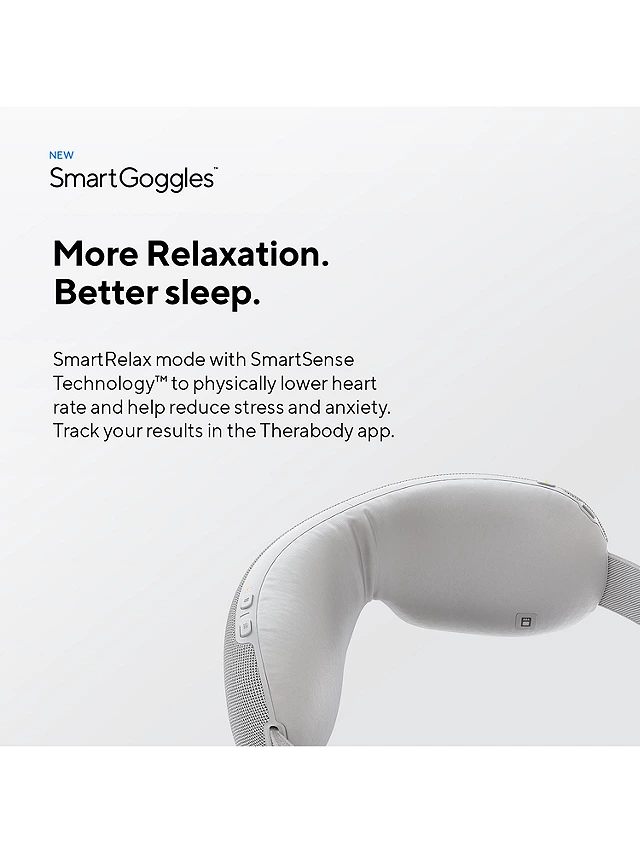 Feel better through the day and sleep better through the night with SmartGoggles. Whether you stare at a screen all day, suffer from headaches and migraines, or struggle to fall asleep, Therabody SmartGoggles keep you moving throughout your day and help you rest at night. Slip them on to help ease facial tension, relieve eye strain, decrease headache pain and calm your body and mind.