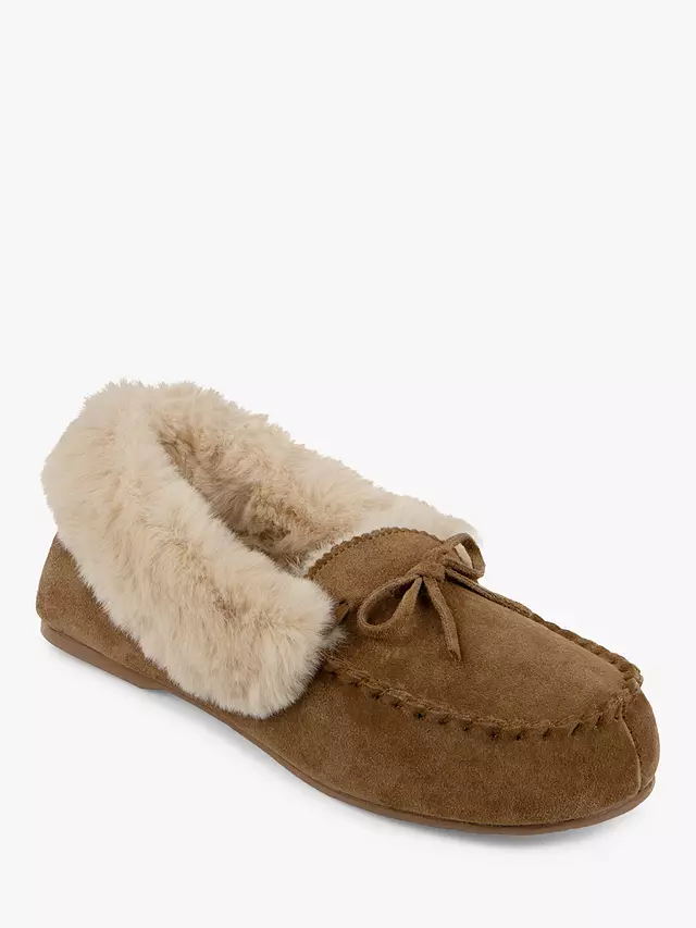 Classic but ever-popular, a cosy suede moccasin with faux fur lining and a lace tie detail is everyone’s idea of a perfect slipper!