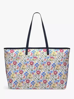 Radley Finsbury Broderie Print Recycled Zip Top Shoulder Bag, Chalk/Multi