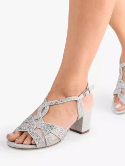 Paradox London Nadia Wide Fit Glitter Block Heel Sandals, Silver