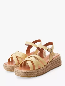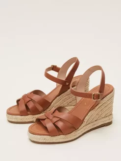 Phase Eight Leather Multi Strap Espadrille Wedge Sandals, Tan